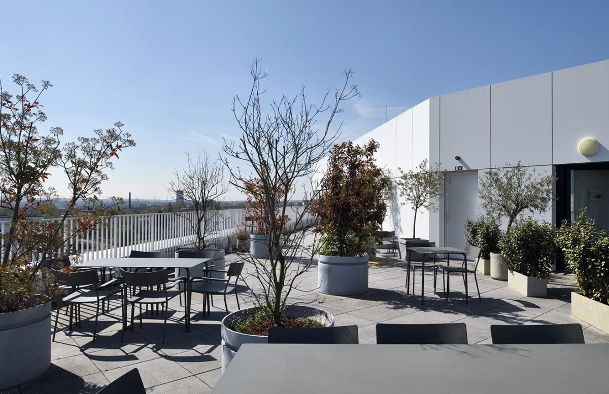 Ontworpen door de architecten DDS+ en Stein Van Rossem, onderscheidt White Angle zich door zijn strakke en sobere lijnen en zijn sculpturale gevel, die uitkijkt op de Hermès-rotonde.