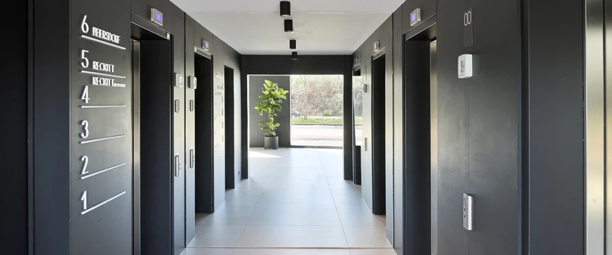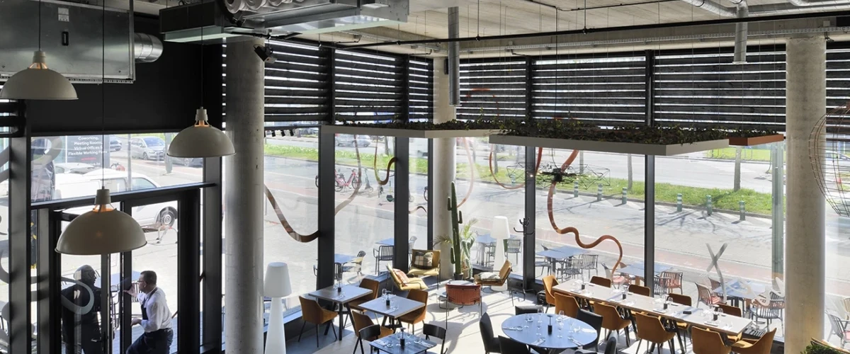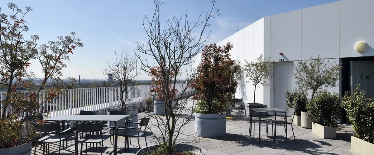 Flexibles, évolutifs et modulaires, les étages supérieurs bénéficient d’une belle lumière et sont équipés de fenêtres à 360 degrés pouvant être ouvertes. Lors de la phase de conception, une combinaison de modernité, de confort et de bien-être a été privilégiée pour offrir un environnement de travail sain aux entreprises et à leur personnel.