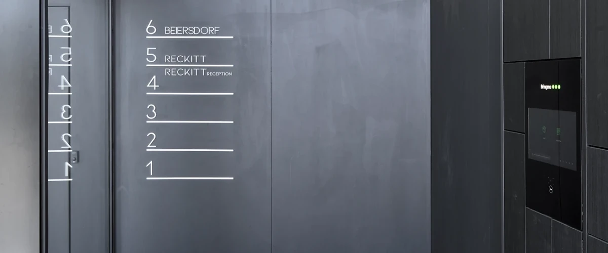 Au rez-de-chaussée, les architectes ont opté pour une approche distinctive afin de différencier l’accès aux bureaux des vitrines des commerces. Grâce à de larges ouvertures, l’entrée des espaces de travail est mise en valeur par une structure tridimensionnelle en métal et en verre, conférant au bâtiment une signature architecturale unique.