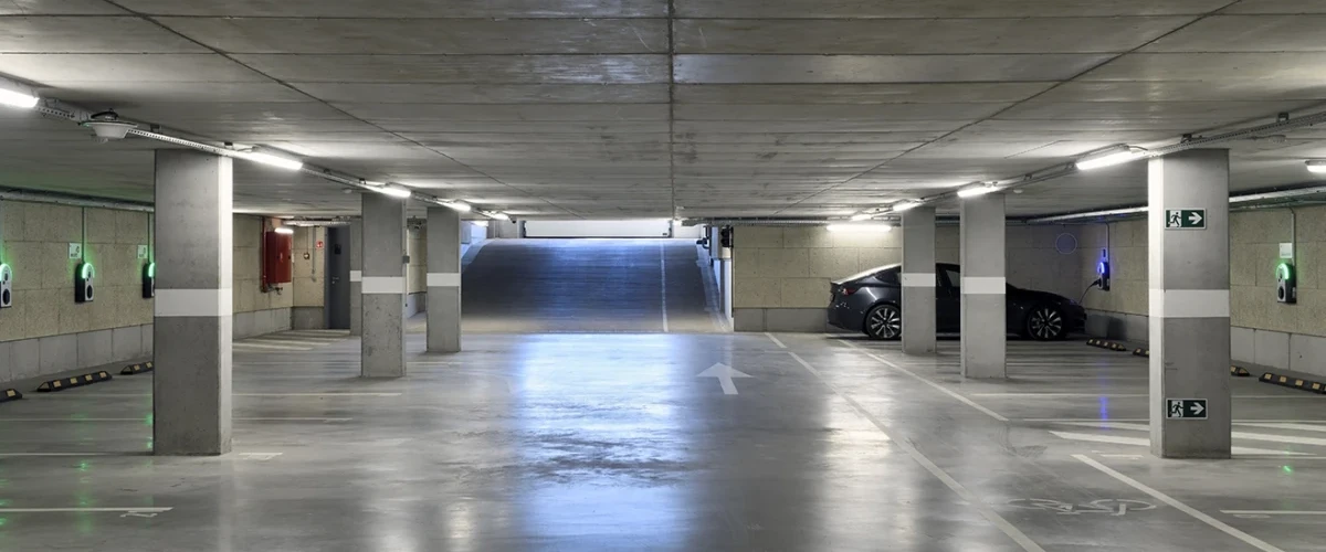 54 places de parking intérieures avec des bornes de recharge pour véhicules électriques.
